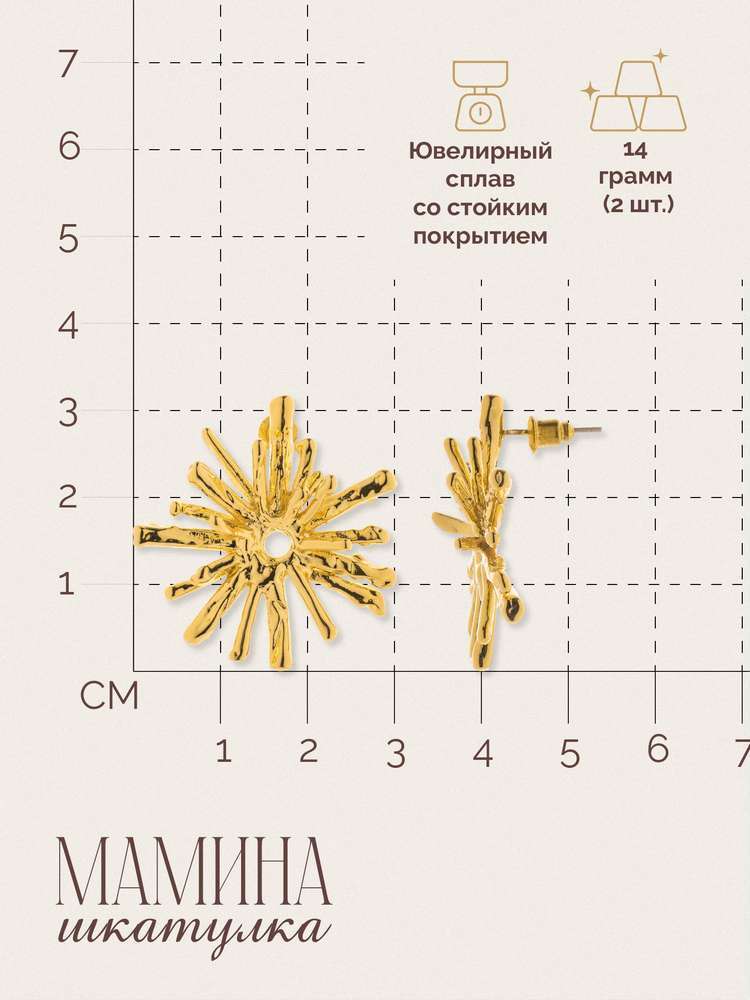 Серьги «Зои» — это воплощение чарующего сияния, которое станет изысканным акцентом в вашем образе. Их золотистый блеск добавляет глубину и утончённость, делая вас неотразимой на любом мероприятии. Эти серьги — нежное прикосновение роскоши, которое делает каждый день особенным. «Зои» — идеальный выбор для тех, кто ценит элегантность и стиль. «Мамина шкатулка» — бренд, воплощающий оригинальные идеи в мире украшений. В коллекции представлены изделия, созданные талантливыми дизайнерами со всего мира. Забота о клиенте — наш приоритет, поэтому мы предлагаем расширенную гарантию, услуги по ремонту и замене украшений. Ассортимент постоянно обновляется, чтобы вдохновлять и радовать тех, кто ищет стильные и необычные аксессуары. Винтажные, минималистичные и богемные модели приходят в элегантной упаковке, что делает их прекрасным выбором как для себя, так и для подарка.