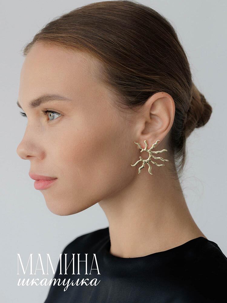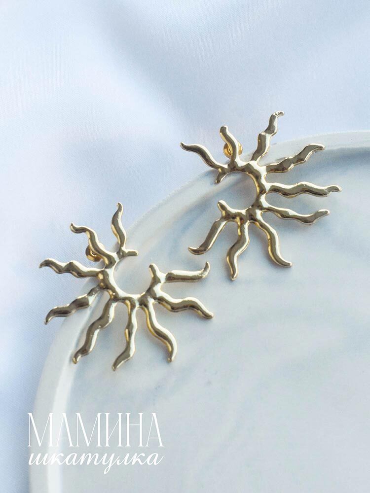 Серьги «Солана» — это золотистое воплощение солнечных лучей, которые придают вашему стилю непередаваемую теплоту и блеск. Эти украшения олицетворяют бескрайний свет и силу природы, добавляя каждому дню особую атмосферу. Изысканный дизайн серег делает их идеальным акцентом, способным подчеркнуть вашу индивидуальность и элегантность. Не упустите возможность внести этот яркий солнечный штрих в свой образ и наслаждаться его сиянием. «Мамина шкатулка» — бренд, воплощающий оригинальные идеи в мире украшений. В коллекции представлены изделия, созданные талантливыми дизайнерами со всего мира. Забота о клиенте — наш приоритет, поэтому мы предлагаем расширенную гарантию, услуги по ремонту и замене украшений. Ассортимент постоянно обновляется, чтобы вдохновлять и радовать тех, кто ищет стильные и необычные аксессуары. Винтажные, минималистичные и богемные модели приходят в элегантной упаковке, что делает их прекрасным выбором как для себя, так и для подарка.