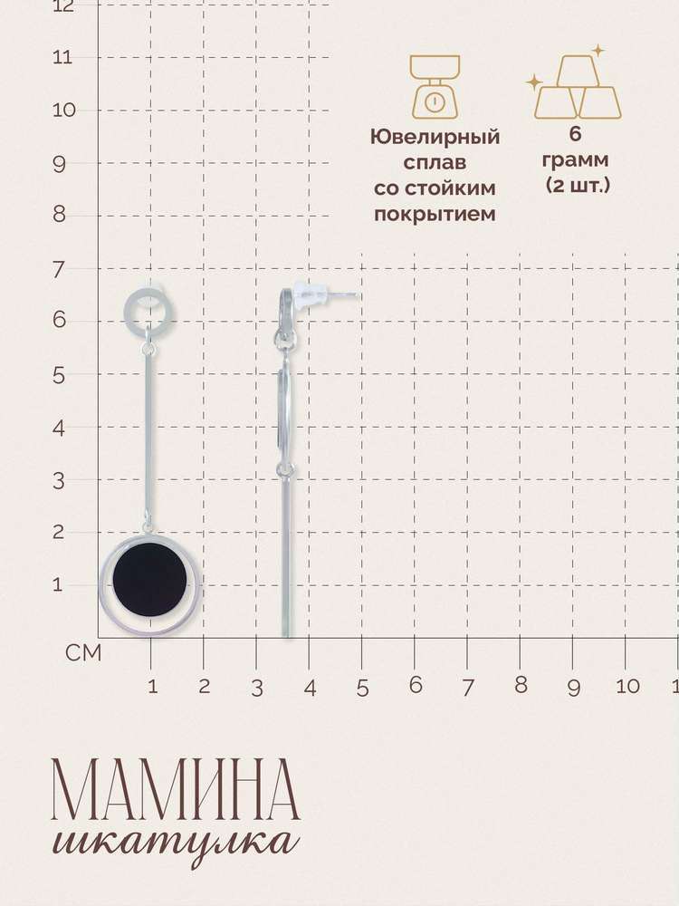 Серьги «Черная луна» – это настоящее произведение искусства, сочетающее мистику и элегантность. Выполненные из бижутерного сплава, они поражают своим глубоким черным оттенком, который олицетворяет загадочность и силу. Изысканный дизайн придаёт образу утончённость и драматизм, привлекая внимание своим магнетизмом. Доступные в золотистом и серебристом цветах, эти серьги станут эффектным акцентом как для вечернего выхода, так и для повседневного стиля, подчеркивая вашу индивидуальность и изысканный вкус. «Мамина шкатулка» — бренд, воплощающий оригинальные идеи в мире украшений. В коллекции представлены изделия, созданные талантливыми дизайнерами со всего мира. Забота о клиенте — наш приоритет, поэтому мы предлагаем расширенную гарантию, услуги по ремонту и замене украшений. Ассортимент постоянно обновляется, чтобы вдохновлять и радовать тех, кто ищет стильные и необычные аксессуары. Винтажные, минималистичные и богемные модели приходят в элегантной упаковке, что делает их прекрасным выбором как для себя, так и для подарка.